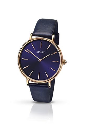 This stunning ladies Seksy Edit watch is made from PVD rose plating and is fitted with a quartz movement. It is fastened with a blue leather strap and has a dark blue dial.