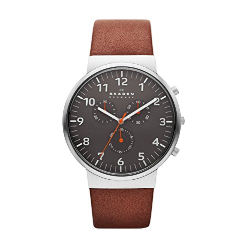 Men Skagen watch of brown leather strap. Cronograph